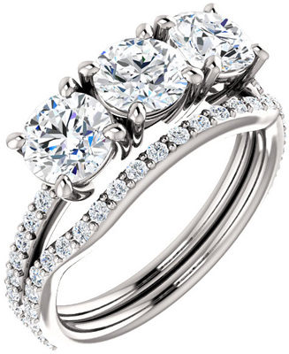 - 3 stone ring - 3 x 0.60 Carat each diamond, Round Shape